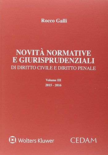 Novità normative e giurisprudenziali di diritto civile, diritto penale e diritto amministrativo: 3 Rocco Galli Télécharger Livres Gratuits